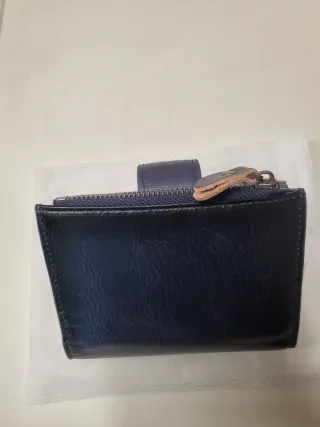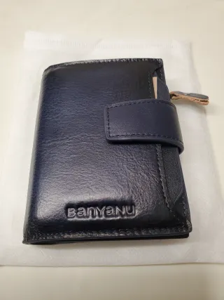 Cartera billetera de cuero con un diseño elegante y práctico. - Compartimento para monedas. - Cierre de botón a presión.