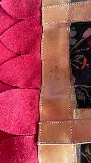 - Mochila pequeña de cuero con cierre de hebilla (usada, pero en condiciones aceptables. Todas las cremalleras funcionan). - Cartera de cuero con detalles (la cremallera del monedero está rota, pero el resto de la cartera está usada, pero en buen estado). - Material: Cuero.