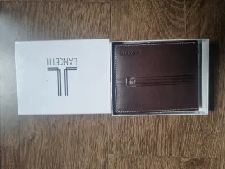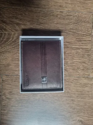 Elegante cartera de cuero marrón de la marca Lancetti. Presentada en su caja original. - Diseño clásico y atemporal. - Acabado liso con detalles de costura. - Logo de la marca grabado en el interior.