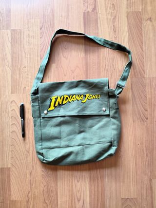 Bolso de lona con el logo de Indiana Jones. Con bolsillo interior. - Cierre con botones a presión. - Correa ajustable para llevar al hombro.