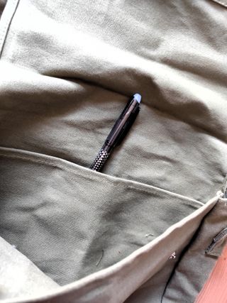Bolso de maestro de lona resistente, ideal para llevar tus esenciales. - Cierre de solapa con broches. - Correa ajustable para el hombro. - Bolsillo frontal con cierre. - Diseño clásico y funcional.