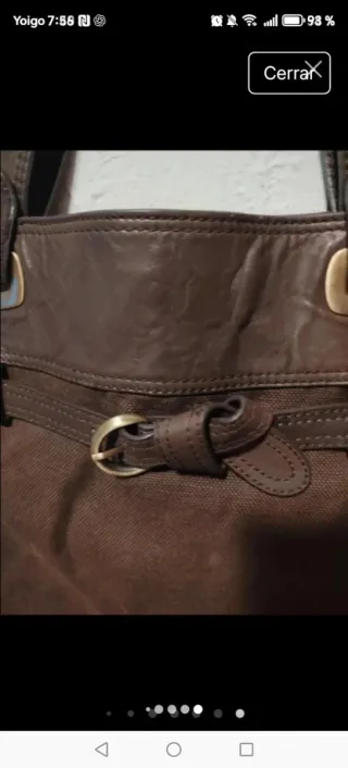 Bolso Lona Grande Asas Piel Marrón Gris 0908