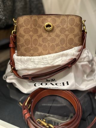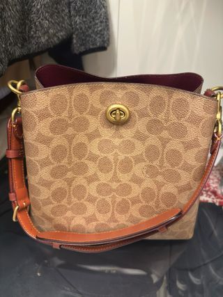 Bolso de hombro Coach Willow en lona con el distintivo estampado de la marca. Un accesorio elegante y práctico. - Lona con estampado de la firma. - Cierre con giro metálico. - Correa de hombro ajustable.