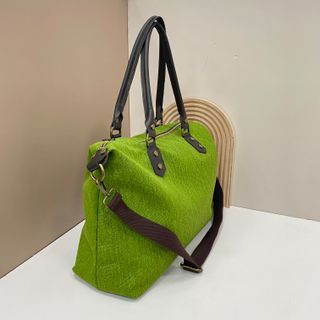 Bolso Lona Grande Piel Auténtica Verde 0909