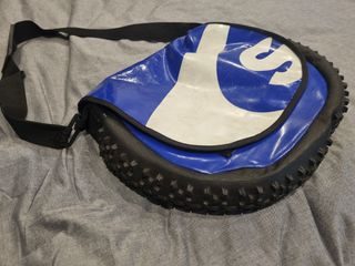 Bolsa mochila bandolera de la marca de neumáticos Schwalbe. Material cubierta neumático y lona. Perfecto estado.
