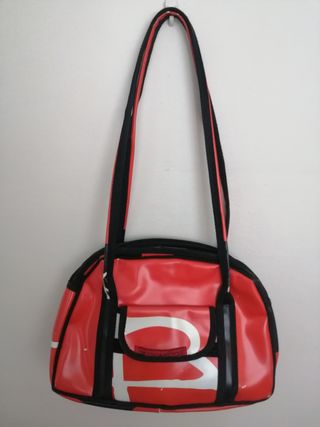 Bolso hecho con lona de vaya. Mide 29 de largo por 20 de alto y las asas miden 30 cms de alto.Con cremallera y bolsillo interior. Pesa muy poco. Usado en sesión de fotos. En perfecto estado.