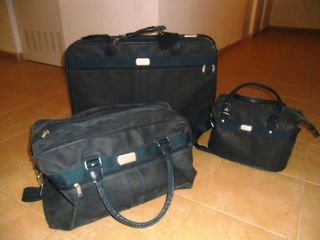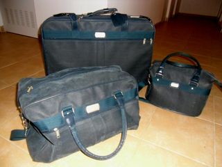 3 maletas de lona fuerte de altísima calidad. Maleta grande de 65x43x20cm, con correas, asa y 2 ruedas. Bolsa de equipaje mediana y bolso rígido tamaño cabina. No necesitas más que tu billete!