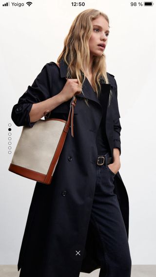 Bolso de lona de Mango. Con bolsillo interno con cremallera y cierre mediante lazada. Perfecto estado.