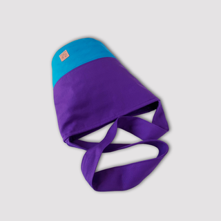 Bolso de lona con un diseño bicolor. Cuenta con asas superiores y una correa para el hombro. - Material: Lona. - Dos asas superiores. - Correa de hombro ajustable.