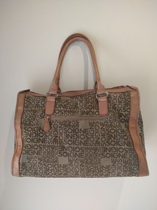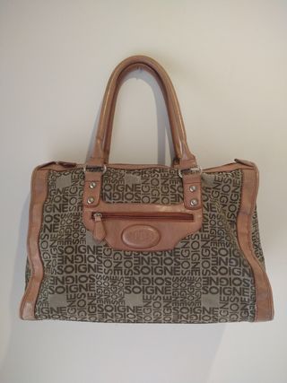Bolso clásico . - Material exterior de lona. - Detalles y asas de piel sintética - Parche de piel con logo grabado.