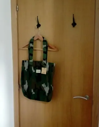 Más cosas de camuflaje en mi armario. Bolso tote bag / bolsa de tela / lona / loneta de algodón, camuflaje en tonos verde/ caqui / gris. Lona muy robusta, asas resistentes, cierre mediante broche, y mucha capacidad. Marca Pull&Bear. Nuevo sin estrenar con etiqueta. Mira mi armario, hago lotes para envío. Escucho ofertas