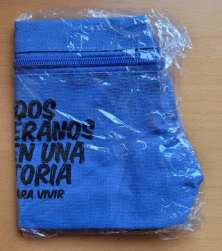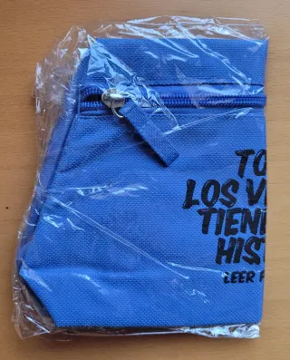 Bolso de lona azul y negra con cierre de botón y bolsillo en asa. Regalo sin estrenar. Recogida en persona en Málaga (cerca de Huelin, La Paz o La Alcazaba) o envío por compra mínima de 3€. DESCUENTO POR COMPRA CON OTROS ARTÍCULOS ANUNCIADOS EN MI PERFIL.