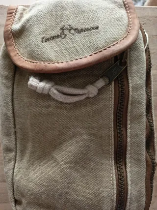 Riñonera o bolso de mano de la marca Coronel tapioca - Confeccionada en lona resistente. - Ribete y detalles en piel. - Cierre de cremallera.