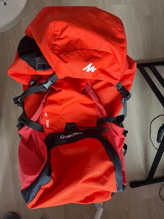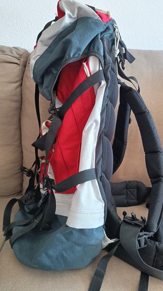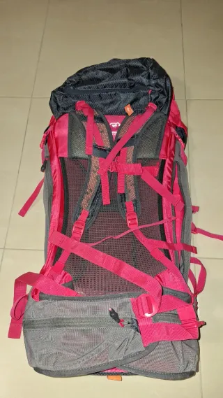 Mochila de montaña y trekking con capacidad de 70 litros + 5L. Solo la he usado una vez, esta totalmente nueva. - Compartimento principal espacioso. - Compartimento superior ampliable 5L y ajustable (se puede usar de forma independiente). - Correas de hombro y lumbar ajustables. - Tejido resistente y duradero. - Múltiples bolsillos exteriores y redes latetales. - Funda impermeable incluída Precio original: 95 euros