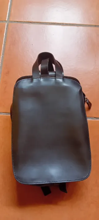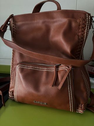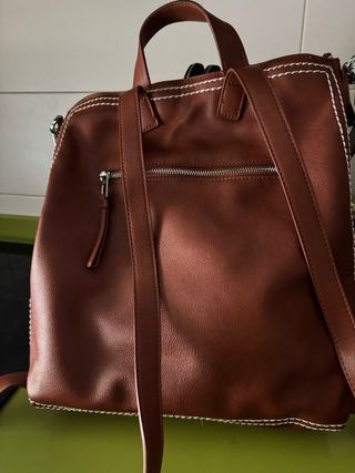 Bolso de piel marrón convertible mochila