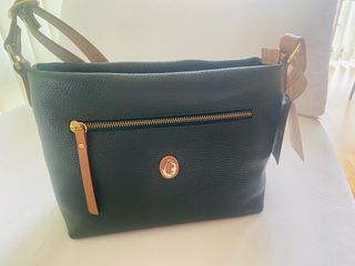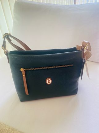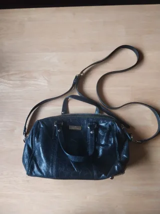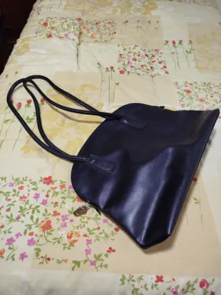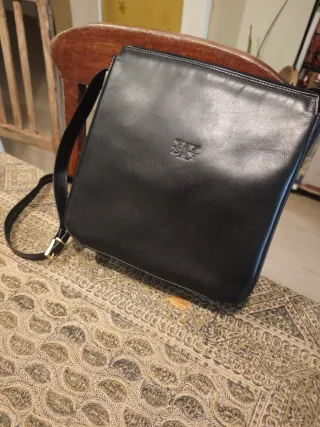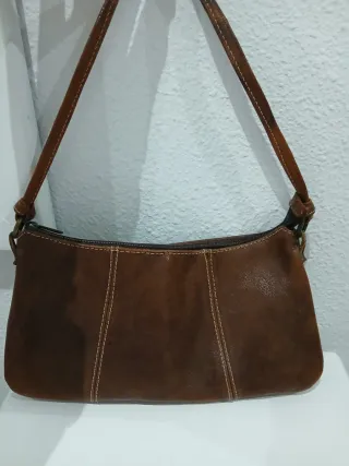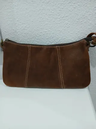 Bolso de piel de excelente calidad con un diseño elegante y atemporal. Perfecto para el día a día o para ocasiones especiales o como fondo de armario. - Material: Piel genuina. - Compartimento principal espacioso. - Correa ajustable para mayor comodidad. - Tiene un compartimento interno con un bolsillo que cierra con cremallera La pieza de metal lateral y el tirador de la cremallera han perdido un poco el brillo de estar guardados Ver medidas en fotos Se entrega con bolsa de tela