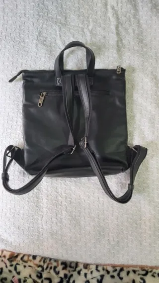 Bolso tipo mochila de piel con un diseño elegante. - Material: Piel. - Color: Negro. Nuevo Medidas 27x20x8 aprox