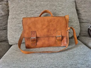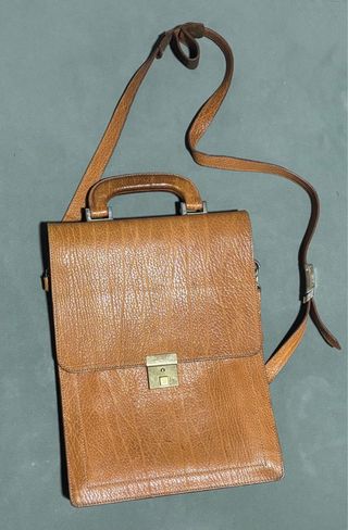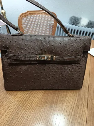Bolso de piel marrón. También Maletin.