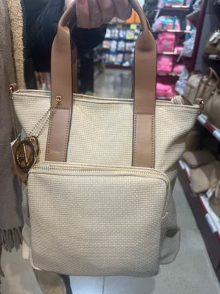 Bolso mochila beige y marrón