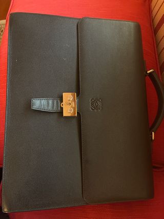 Elegante cartera porta documentos de piel de la marca Loewe. Con departamento por detrás con cremallera 40cm x 29 cm - Color marrón clásico. - Diseño atemporal. - Cierre metálico con. llave.