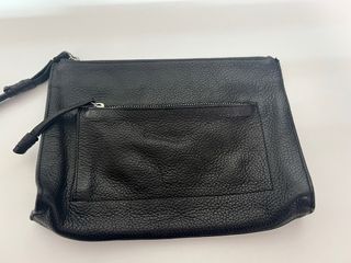 Elegante maletín de la marca Loewe. - Fabricado en piel. - Color negro. - Cierre metálico dorado. - Asa superior. Medidas: 0,38 ancho. 0,29 alto (sin contar el asa). 0,09 fondo (fuelle)