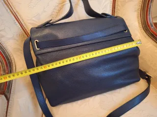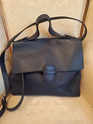 Bolso de piel de la marca Massimo Dutti. - Material: Piel. - Color: Azul.Impecable.Medidas en las fotos.Tiene asa corta y banderola.Barios compartimiento con cremallera.