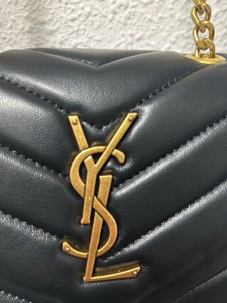 Elegante bolso de mano YSL con un diseño acolchado y detalles dorados. - Piel negra. - Cadena dorada. - Logo YSL dorado. Preguntar antes de comprar