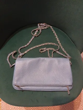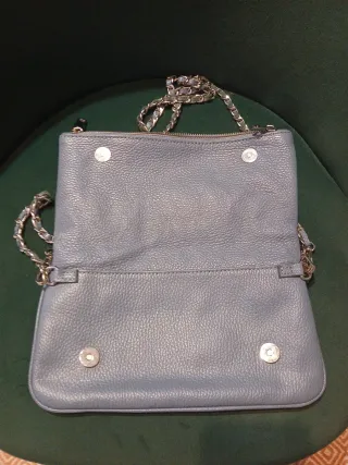 Bolso piel azul con cadena plateada