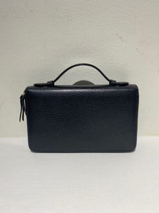 Cartera de viaje de piel de Gucci con asa, estampado en dora del logotipo en la parte delantera, doble compartimento con cierre con cremallera, en la parte interior contiene bolsillo con cremallera, tarjetero, para el móvil y para el bolígrafo. Composición: 100% Piel. Medidas: Alto 12 cm. X Ancho 21 cm. X Profundidad 4 cm.