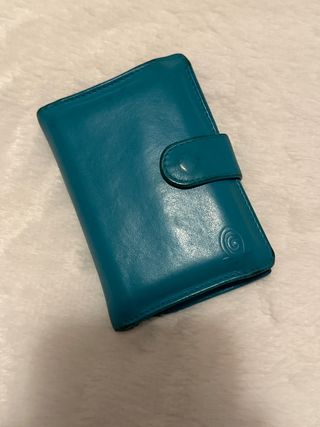 Tarjetero de piel color turquesa