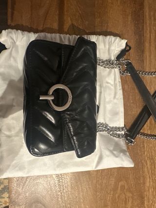 Bolso de piel con diseño acolchado y detalles metálicos. - Asa de cadena. - Cierre con solapa. - Incluye bolsa guardapolvo.