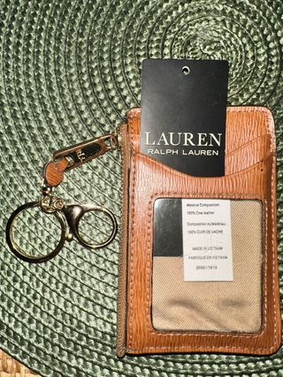 Tarjetero de la marca Lauren Ralph Lauren, confeccionado en piel de vacuno. - Color marrón con detalles dorados. - Incluye etiqueta original. - Fabricado en Vietnam.