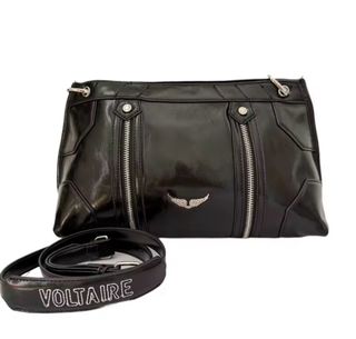 Bolso de mano Zadig & Voltaire en piel negra. Diseño moderno con detalles metálicos. - Acabado brillante. - Cierre de cremallera. - Asa ajustable. - Logo de alas metálico.