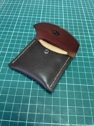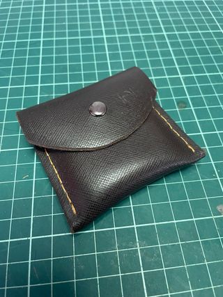 Monedero hecho a mano con piel de alta calidad. Un accesorio práctico y elegante. - Cierre de botón a presión. - Costuras reforzadas. - Diseño compacto. - Medidas 80x80mm