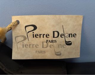 Elegante bolso de mano de la marca Pierre Denee. - Confeccionado en piel y tejido. - Diseño moderno y funcional.