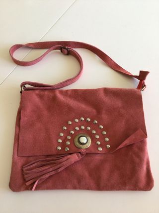 Bolso bandolera piel vuelta rosa