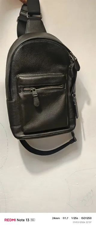 En perfecto estado. Tiene imán en la tapa delantera - Compartimento principal con cremallera. - Bolsillo frontal con cremallera. - Correa ajustable para llevar al hombro. - Detalles metálicos.