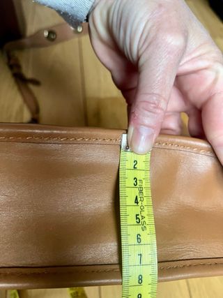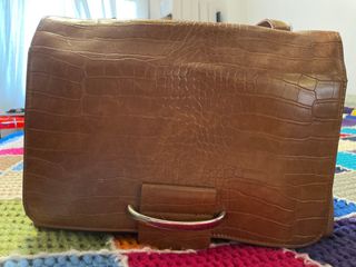 Está en buen estado general. Se le cayó el imán de la tapa delantera y se arregló pegándolo. Tiene algún roce en los costados debido al uso y el metal de las hebillas tiene desgaste. Escucho ofertas. Medidas aprox: 27x28 Longitud de la cinta: 68cm - Material: Piel. - Cinta ajustable - Color: Negro. - Cierre con solapa.