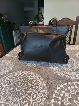 Bolso de piel negro, espacioso y con un diseño elegante. - Cierre de cremallera. - Asas con hebillas doradas. - Detalle de costuras blancas. - Varias cremalleras dentro y fuera. Está nuevo. Puedo entregar en Madrid o enviar a casa.