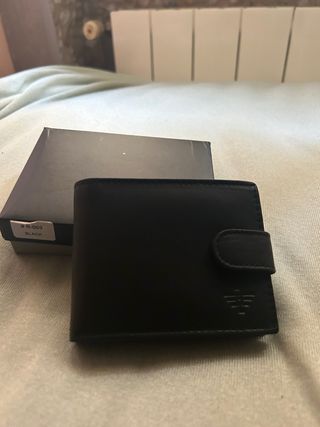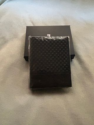 Elegante cartera de caballero de piel, sin estrenar. - Diseño clásico y funcional. - Compartimentos interiores para tarjetas y monedas. - Acabado texturizado.