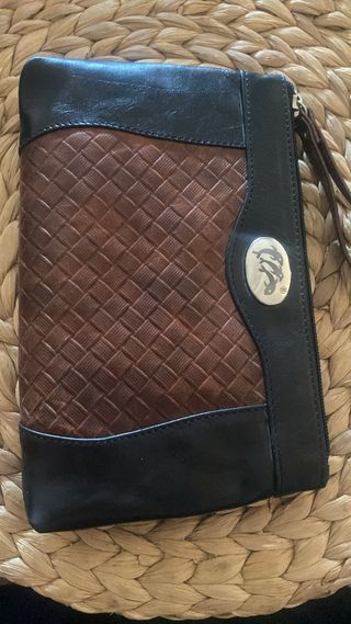 Bolsito de mano Unrique piel azul y marrón