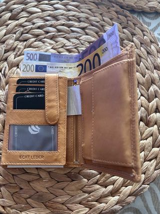 Monedero de piel de búfalo. - Diseño elegante y práctico. - Cierre de cremallera.