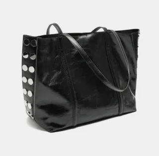 Bolso de piel con un diseño moderno y detalles de tachuelas. - Material: Piel - Color: Negro - Adorno: Tachuelas metálicas