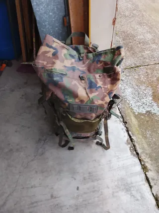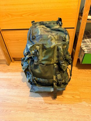 Mochila militar del ejército. Gran capacidad y muy poco uso. Compartimentos exteriores amplios y cómodos para tener una buena organización. No hay desgaste en el revestimiento interior impermeable. Muy buena mochila y resistente.