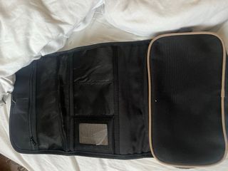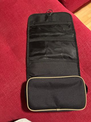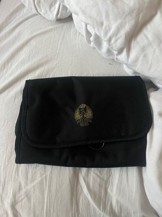 Neceser del Ejército de Tierra con un diseño discreto y funcional. Nuevo sin usar, en su bolsa - Color negro. - Logo bordado en hilo dorado.