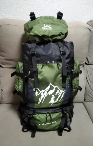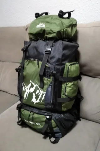 Mochila de gran capacidad, ideal para viajes largos o expediciones. - Capacidad de 90+10 litros. - Diseño en color verde ejército y negro. - Compartimento principal espacioso. - Bolsillos laterales adicionales. - Correas ajustables para mayor comodidad. - Medidas: 80x45x25 cm.
