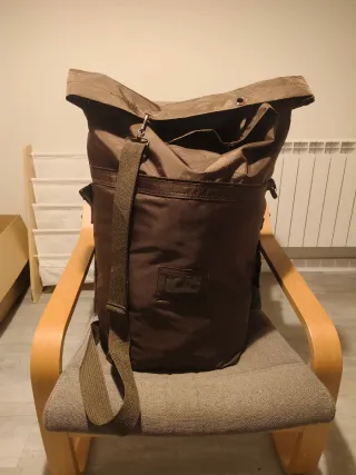 Maleta de estilo militar en color marrón. Usada pero en buen estado. Va sin la mochila pequeña frontal - Compartimento principal espacioso. - Bolsillo frontal con cremallera. - Asas de transporte resistentes.