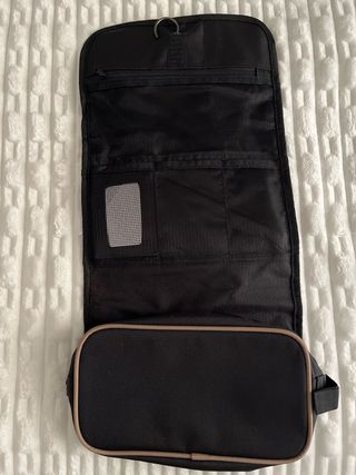 Neceser del ejercito de Tierra, original. Varios compartimentos, algunos con cierre de cremallera. Percha en parte superior para colgar . Tamaño cerrado 27x17 cm. Tamaño abierto 27x52cm. Nuevo en bolsa original