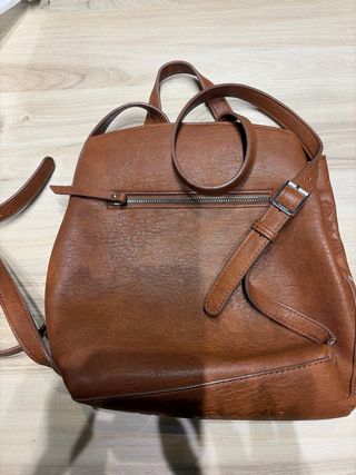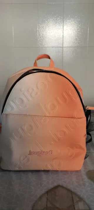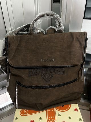 Mochila Desigual en color marrón, completamente nueva. - Diseño moderno y práctico. - Cierre de cremallera. - Asa superior. - Bolsillo frontal con cremallera.