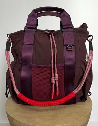 Bolso de la marca Desigual con un diseño moderno y detalles en rosa. - Material exterior de cuero sintético. - Panel central de malla. - Cierre de cordón ajustable. - Tiras decorativas con pespuntes. - Logo de la marca grabado.